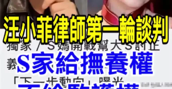 汪小菲律師第一輪談判,S家給撫養權不給監護權,本質就是爭奪大s遺產