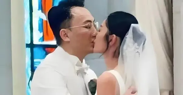 恭喜!香港知名女星風光大嫁,穿深v婚紗與多金老公教堂熱吻