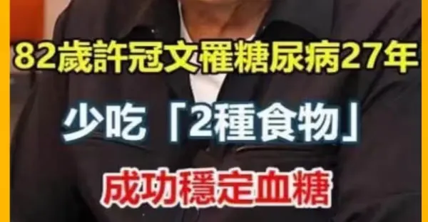 許冠文82歲 罹糖尿病27年 不吃這2種食物 成功穩定血糖