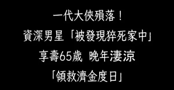 一代大俠殞落!!! 資深男星「被發現猝死家中」享壽65歲 晚年淒涼「領救濟金度日」