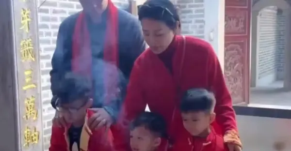 胡杏兒春節帶三個兒子回祠堂祭祖,化身客家媳婦,挑扁擔很接地氣