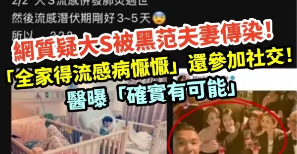 網質疑大S被黑范夫妻傳染!「全家得流感病懨懨」還參加社交!醫曝「確實有可能」