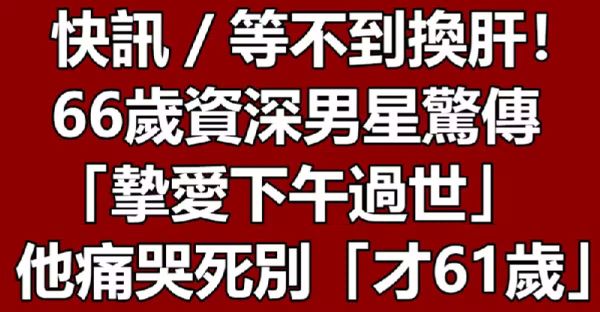 本土資深男藝人,胰臟癌病逝享壽67歲 出道60年奪3座金鐘獎…