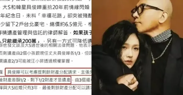 台媒:大S已火化留下6.5億遺產 疑似分成三份 孩子可能分200萬