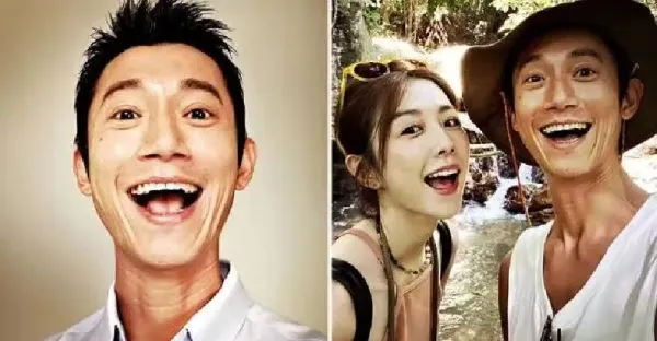 陳豪拿著行李耐心等太太陳茵媺買化妝品,遇見遊客求合影開心配合