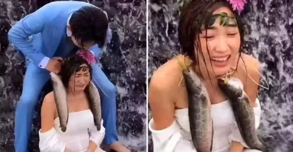 小夫妻拍婚紗照!攝影師「拿兩條魚當道具」,新娘一臉嫌棄,結果被自己「驚艷」到了