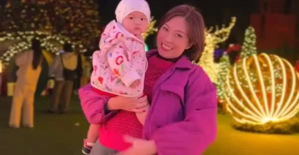 43歲港姐朱慧敏母女跨年!無懼7個月孕肚單手抱娃,即將三年抱倆