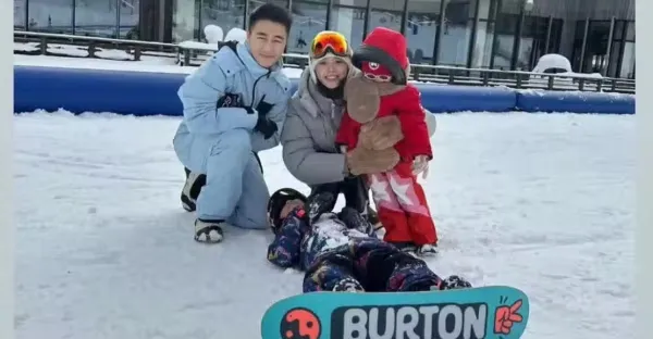 何猷君奚夢瑤一家四口滑雪,5歲兒子躺雪地玩耍,3歲女兒可愛出鏡