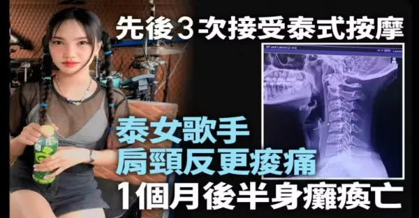 女歌手去按摩「半身癱瘓」 一個月後身 亡