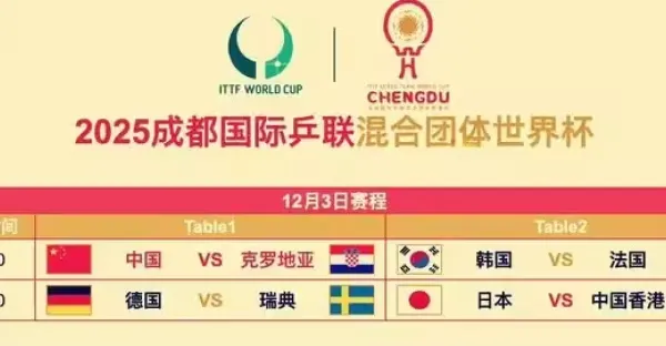混團世界盃:12月3日賽程發布!國乒迎戰克羅埃西亞,動漫莎頭齊上