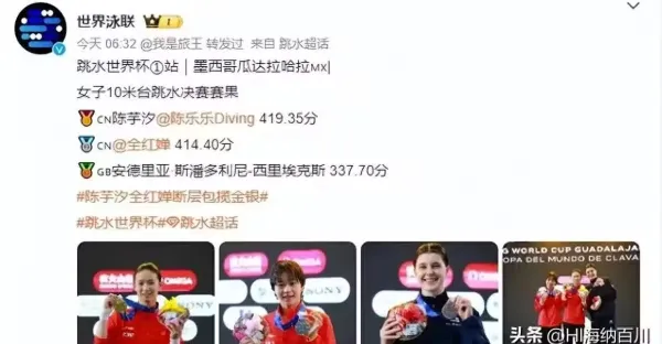 全紅嬋衝擊年度首金!跳水世界盃第2站賽程,2個男子項目再迎挑戰