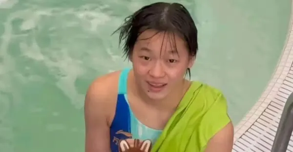 中國跳水隊適應場地!全紅嬋花粉過敏眼睛紅腫11人坐電梯好擁擠