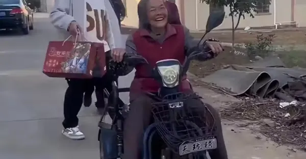 全紅嬋戴墨鏡拎禮物回家,與外孫放鞭炮過新年