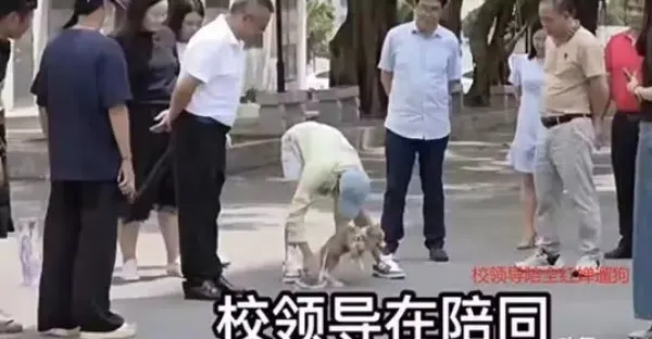 全紅嬋去學校接姐姐過節,校領導圍觀全妹遛狗,奧運冠軍氣場太強
