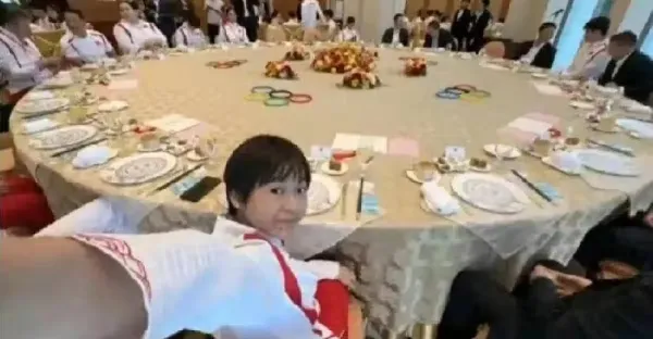 搞笑!全紅嬋曬大桌C位,大領導挨著,卻有人在線教她餐桌禮儀~