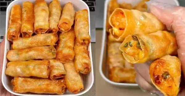 餛燉皮做的蝦滑卷,嘎嘎香 巨好吃