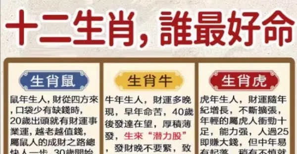 吉祥順遂!這五大生肖「天生富貴命」總有一天會過上富裕生活