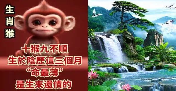 生肖猴:十猴九不順,生於陰曆這三個月「 命最薄 」,是生來還債的