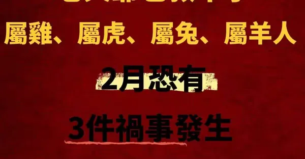 老天爺也救不了,「屬雞、屬虎、屬兔、屬羊人」2月恐有3件禍事發生,千萬要留心!