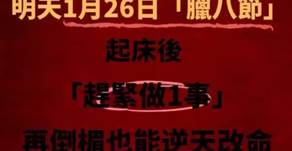 60年一次,就在明天1月26日「臘八節」起床後「趕緊做1事」再倒楣也能逆天改命, 乞丐也能變富翁!