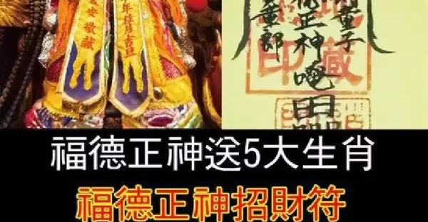 福德正神送五大生肖招財符,吸福納財,招財進寶
