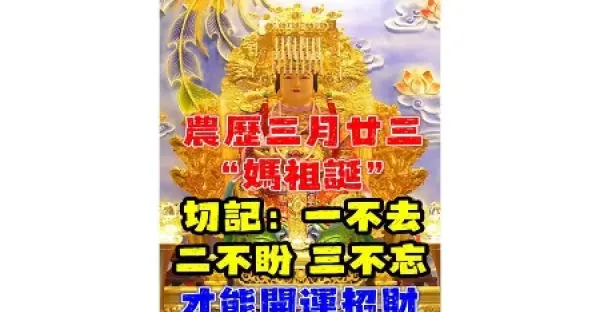農曆三月廿三「媽祖誕」,切記:一不去、二不盼、三不忘、才能開運招財