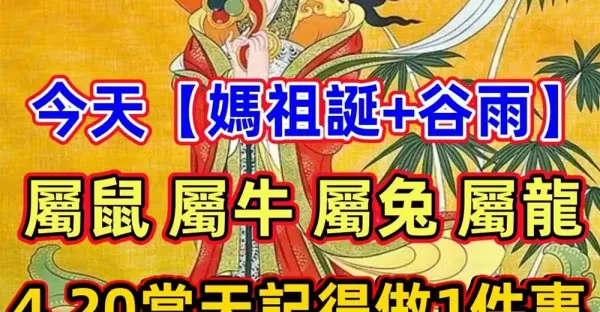 百年難得一見!【媽祖誕+穀雨】,生肖屬鼠、牛、兔、龍 4.20日當天記得做1事,順風順水一整年~