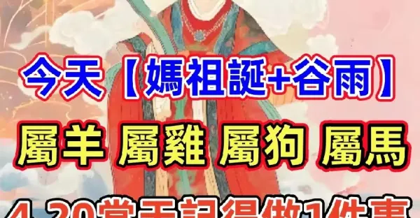 百年難得一見!【媽祖誕+穀雨】,生肖屬羊、雞、狗、馬 4.20日當天做1事,順風順水一整年