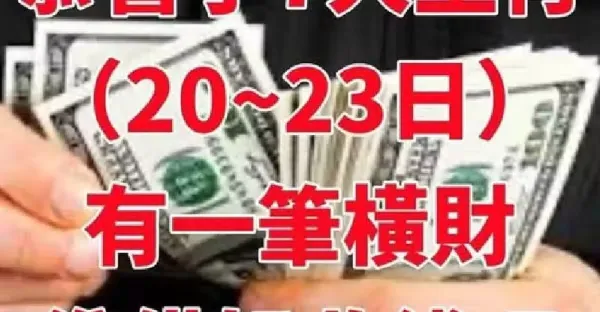 恭喜了7大生肖,在未來三天(4月20~23日)即將有一筆橫財!準備好收錢吧!