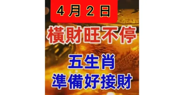 4月2日 橫財旺不停「 五生肖 」 準備好接財!