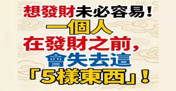 想發財未必容易!!! 一個人在發財之前, 會失去這「5樣東西」