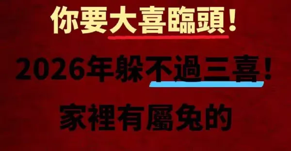 生肖兔,你要大喜臨頭!2026年躲不過三喜! 家裡有屬兔的快來接喜了!