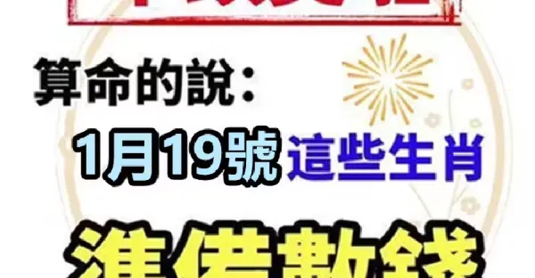 明天 「 1月19號 」 三生肖 橫財最旺!