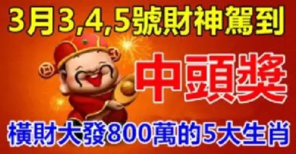 3月3,4,5號財神駕到,橫財大發的五大生肖