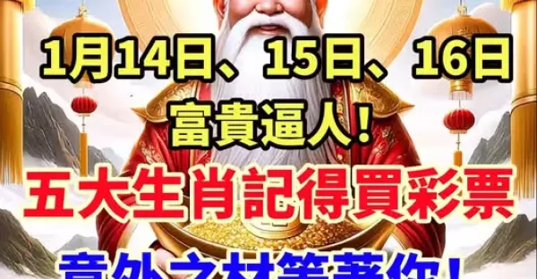 「 明天 1月15號 」 三生肖 橫財最旺!