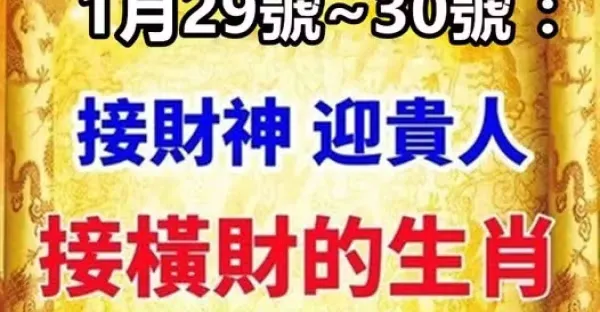 1月29號~30號(正月初一,初二):接財神 ,迎貴人,接橫財的生肖!