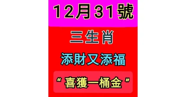 2024最後一天!12月31號 三生肖 添財又添福 「 喜獲一桶金 」