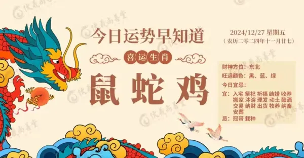 12月27日運勢指南(喜運生肖:鼠 蛇 雞)
