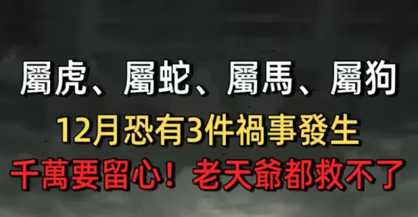 「 屬虎、屬蛇、屬馬、屬狗」12月恐有3件禍事發生,千萬要留心!