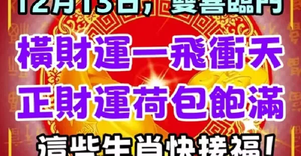 12月13日雙喜臨門,橫財運一飛沖天,正財運荷包飽滿!這些生肖快來接福!