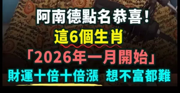 阿南德點名恭喜!!! 這6個生肖「2026年一月開始」財運十倍十倍漲,想不富都難