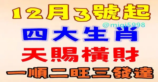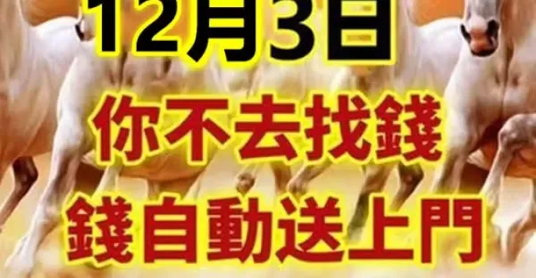 12月3 ~ 4號 (今天明天)三生肖財運大旺,橫財進門