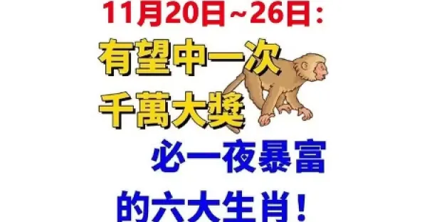 11月20日~26日:有望中一次千萬大獎 ,必一夜暴富的生肖