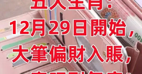 12月29日開始大筆偏財入帳,一直旺到年底的生肖!!