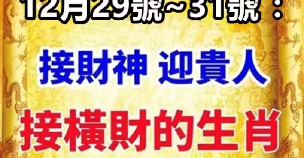 12月29號~31號:接財神 ,迎貴人,接橫財的生肖!!