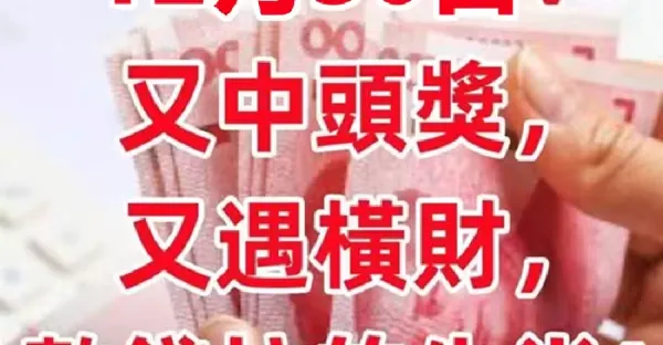 12月30日又中頭獎 ,又遇橫財,數錢忙的生肖! !