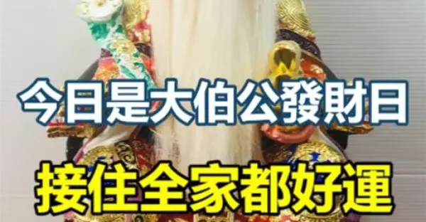 偷偷告訴你今日是大伯公發財日,大伯公送財給你,接住全家都好運,今天就中頭獎