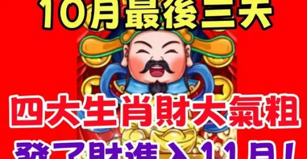 10月最後三天,四大生肖財大氣粗,發了財進入11月!