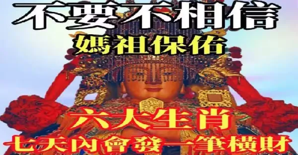 不要不相信,媽祖保佑,六大生肖,七天內會發一筆橫財