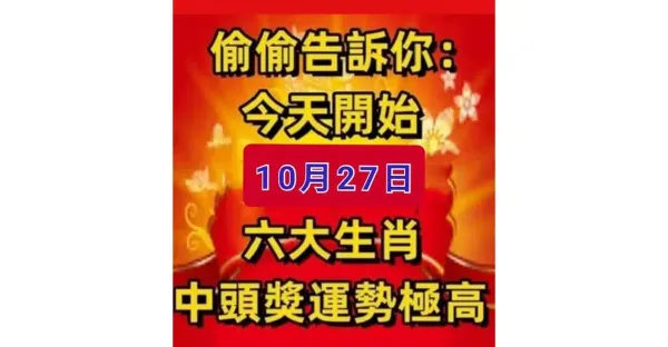 偷偷告訴你:10月27日 今天開始 六大生肖 中頭獎運勢極高
